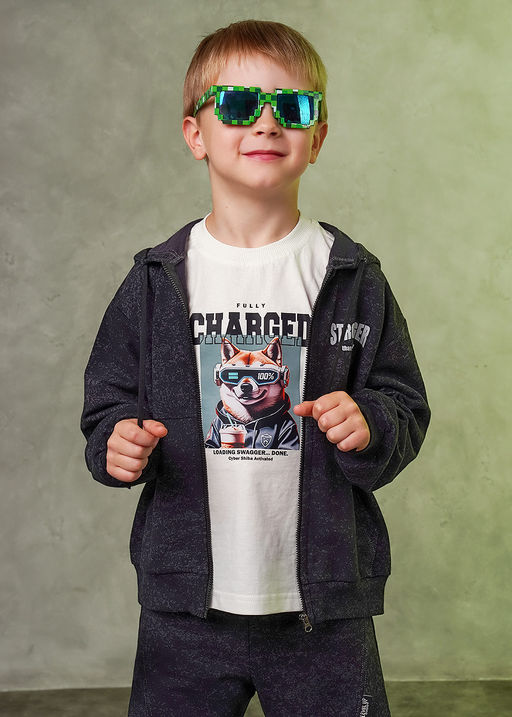 Стильная толстовка из варёного футера для мальчика. Комфортная посадка оверсайз, капюшон, застежка на молнии, удобные карманы, эластичные манжеты и пояс - всё, что нужно для активной жизни ребёнка! Сочетай толстовку с брюками из новой коллекции. 95% Хлопок, 5% ПУ(эластан)
