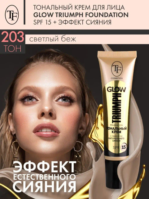 • TF Крем тональный GLOW TRIUMPH Foundation тон 203 светлый беж 30мл