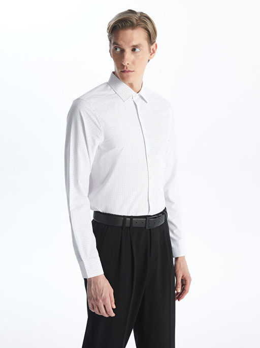 Slim Fit Uzun Kollu Desenli Poplin Erkek G?mlek