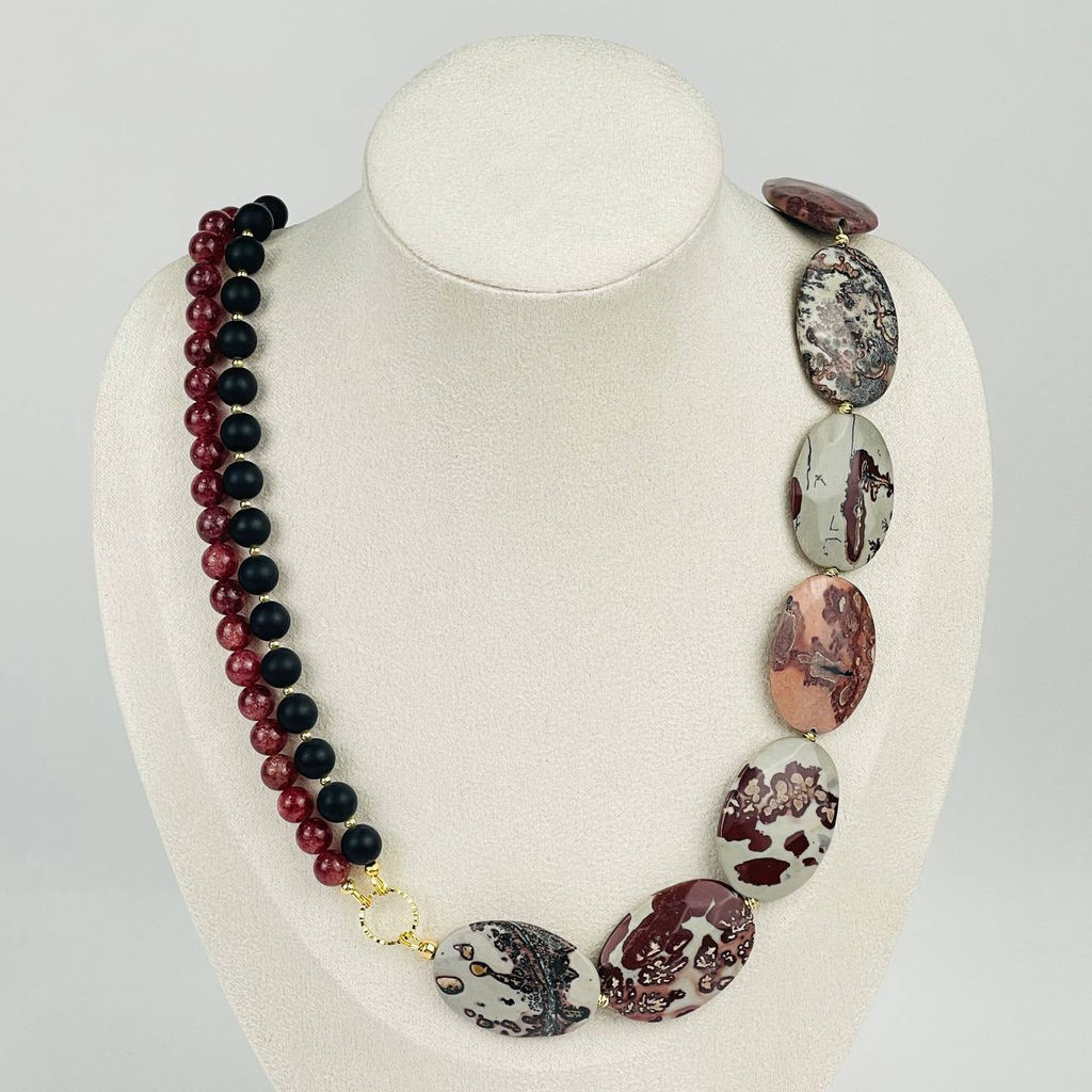 • Колье из Яшмы, Клубничного кварца и Агата