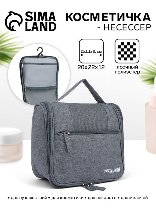 • Косметичка-несессер на молнии, с ручкой, цвет серый