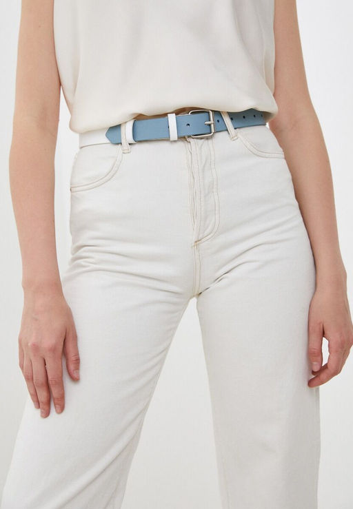 Стильный широкий ремень выполнен из натуральной кожи двух цветов, декорирован пряжкой серебристо-перламутрового цвета. Гармоничное сочетание белого и голубого цветов, использованное в оформлении, выглядят очень оригинально и подчеркивают незаурядность обладательницы аксессуара. Может отлично комбинироваться с жакетами, рубашками свободного кроя, джинсами, платьями, кардиганами.