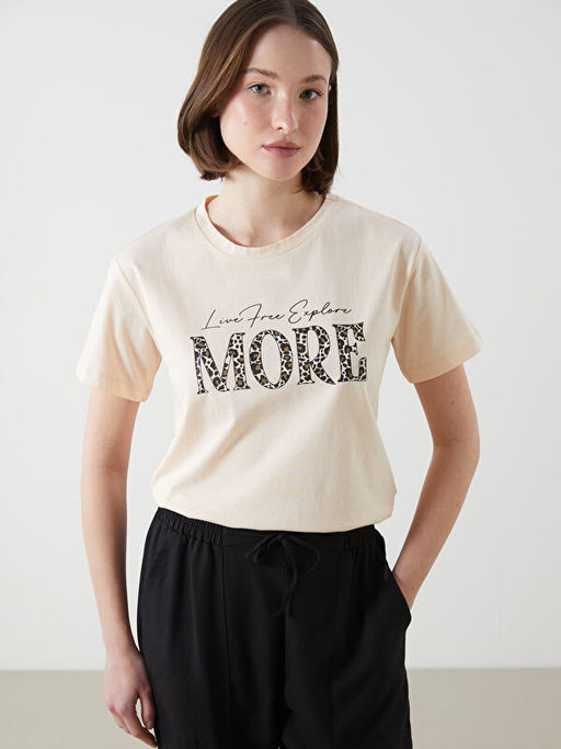 • Bisiklet Yaka Bask?l? Kad?n Ti??rt