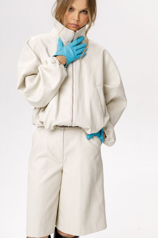 Укороченная куртка-бомбер из экокожи (приобрести шорты-бермуды с фото можно по арт. 6634).