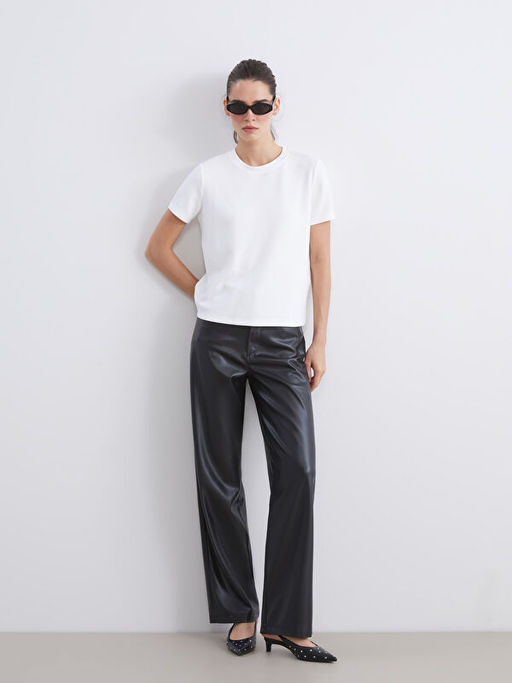 Dar Fit Kad?n Deri G?r?n?ml? Pantolon