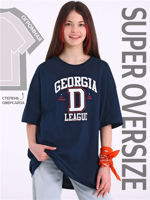 футболка,хлопок 100%,кулир / хлопок 100%,темно-синий77 / - / Грузия / - / - / -,Оверсайз футболка для девочки выполнена из кулира легкого хлопкового полотна. Изделие прямого покроя, с короткими рукавами, со спущенной линией плеча, Круглый вырез горловины обработан эластичной бейкой из полотна компаньона, украшено печатью. Уход: только машинная стирка (руками не стирать!) при температуре 40 градусов, без предварительного замачивания. Изделия с печатью и декором перед стиркой необходимо вывернуть на изнаночную сторону.
