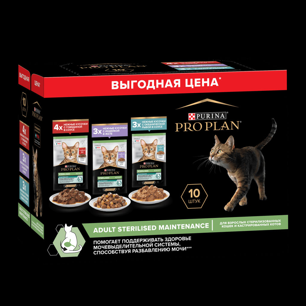 Набор паучей для кастрированных кошек 10 шт (говядина в соусе, индейка в желе,океаническая рыба в соусе) 12518364/12530138