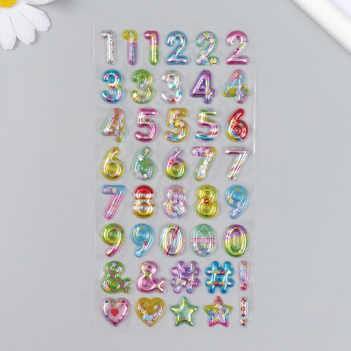 Цена за 7 шт. Наклейка пластик "Цифры" с глиттером МИКС 9х20,5 см