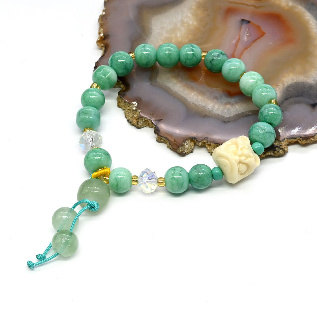 • Браслет Голова Льва шарик 8мм цвет мятный, 17см