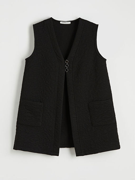V Yaka Kendinden Desenli Kad?n Yelek
