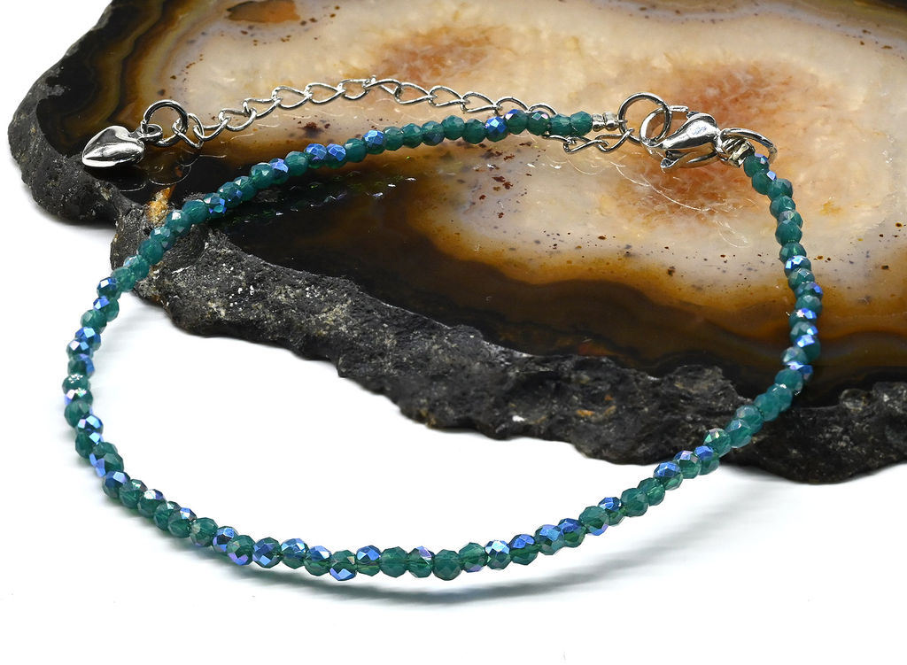 • Браслет из циркона шарик граненый 2мм цвет лазурный, 19см