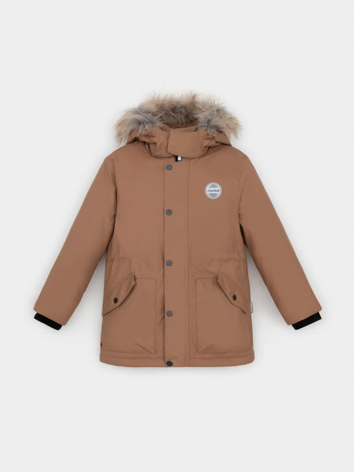 Зимняя парка для мальчика с утеплителем SEE®: 250 г/м2. Выполнена из мембранной ткани с дополнительной тефлоновой обработкой, которая предохраняет изделие от загрязнений и отталкивает влагу. Подклад выполнен из 100% полиэстера Tricot. Парка застёгивается на молнию и внешнюю планку с металлическими кнопками, предусмотрена защита подбородка. Съёмный капюшон на кнопках и липучках имеет эластичную утяжку со стопперами и отстёгивающуюся опушку из искусственного меха. На рукавах внутренние эластичные манжеты. Два накладных кармана с клапанами по бокам. По талии эластичная утяжка со стопперами. Во всех изделиях верхнего ассортимента для безопасности ребёнка предусмотрены светоотражающие элементы.. Состав: верх: 80% нейлон, 20% полиуретан; подклад: 100% полиэстер; утеплитель: 100% полиэстер