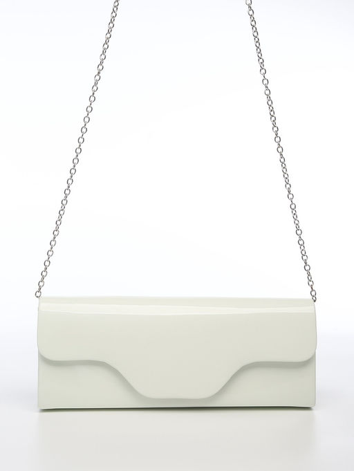 • Сумка-клатч женская вечерняя на магните, на длинной цепочке, лаковая, однотонная, белая