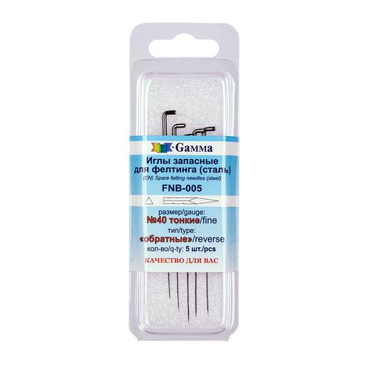 • Gamma FNB-005 Иглы для валяния (фелтинга) запасные в пластиковой упаковке с европодвесом 5 шт №40 тонкие (обратные)