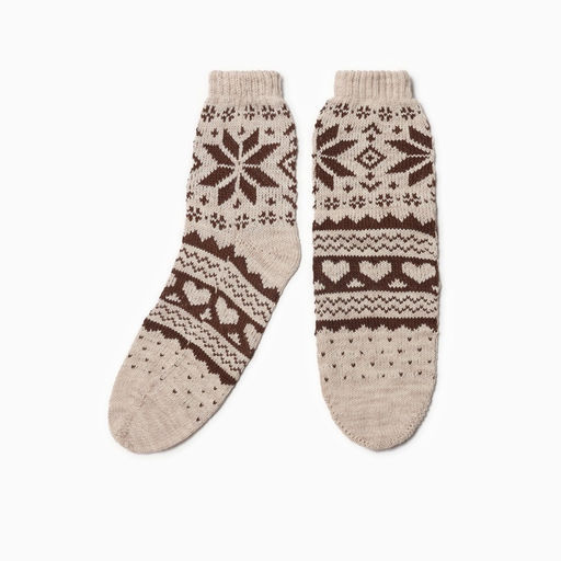• Носки женские новогодние шерстяные, коричневые, размер 25-27