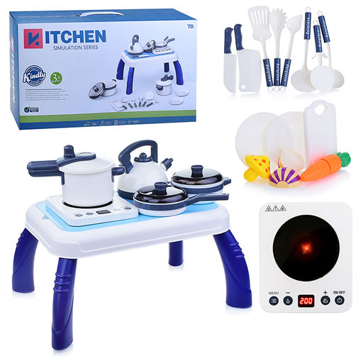 - плита (16.5х19.5х3.5 см.) - сенсорные кнопки, световые эффекты, звуки готовки, при включении играет детская песенка на английском языке, голосове сопровождение (иностранный язык).