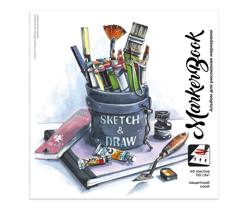 • Альбом для рисования маркерами 195х195 мм, 40 л, блок - белая маркерная бумага 80 г/м?, арт. 61712 Н