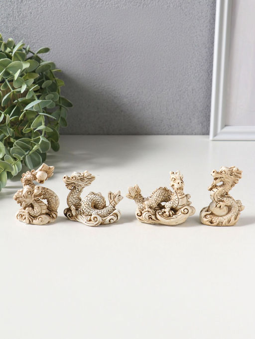 • Сувенир полистоун "Китайский дракон" набор 4 шт беж 3х4х6,5 см