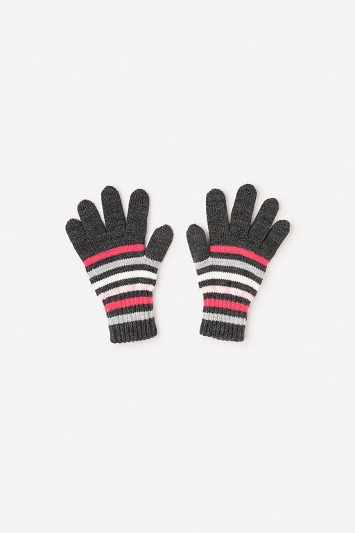 Перчатки с узором в полоску из полушерстяной пряжи. Эластичные манжеты.­