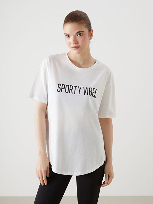 Bisiklet Yaka Bask?l? Kad?n Spor Ti??rt