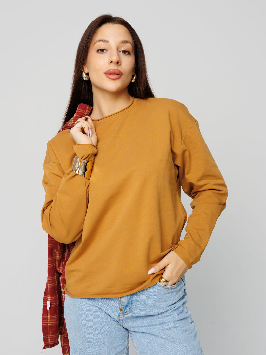 • Женский лонгслив из футера 2-х нитки горчичный ВК-25 (58)