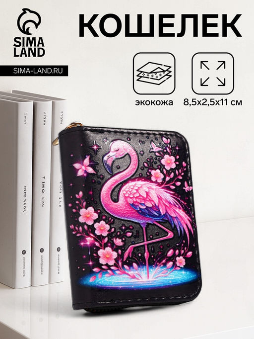 Кошелёк на молнии Фламинго, маленький, чёрный
