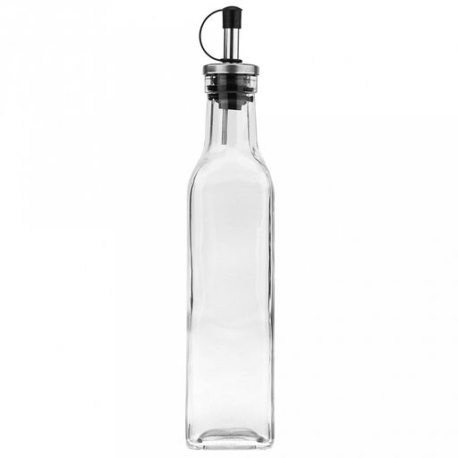 • Бутылка для масла стеклянная "Квадро" 300мл, h24,5см, 5х5х21,2см, дозатор нерж. (Китай)