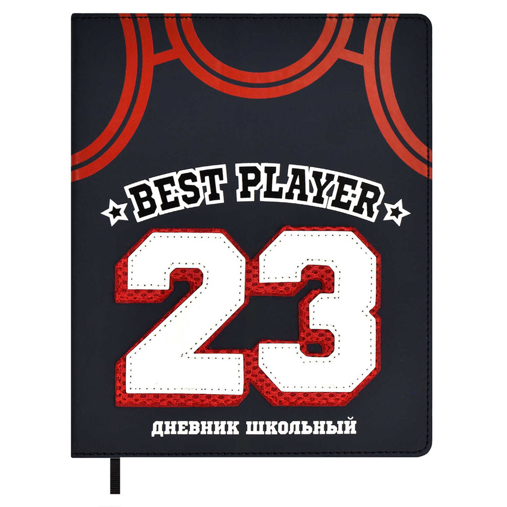 Дневник школьный арт. 66455 / 15 ИГРОК ЧЁРНЫЙ (кожзам: А5+; твёрдый переплёт, материал обложки: искусственная кожа "Лейкер"; декор: аппликация из искусственной кожи, аппликация из полиэстера, шелкография в две краски; способ крепления блока: ниткошвейный; вн. блок: 48 л., белый офсет 80 г/м?, печать в одну краску, справочный материал: универсальная шпаргалка; отделка среза: окрашивание пантоном; закладка: одно ляссе; форзац: печать пантоном; индивидуальная упаковка: ПЭТ-пакет)