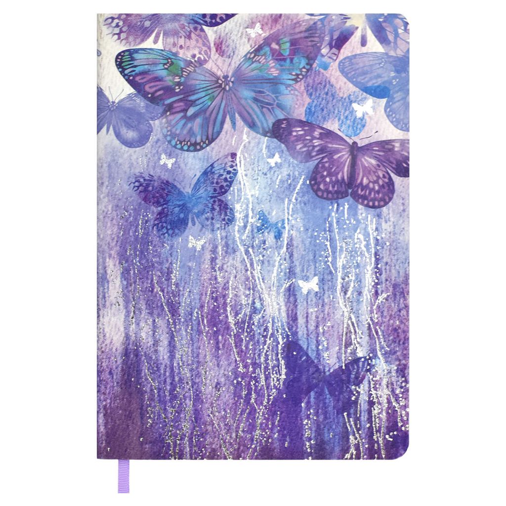 Ежедневник недатированный, А5, арт. 57547/ 20 БАБОЧКИ (кожзам: 146х211 мм, мягкий переплёт, материал обложки: искусственная кожа "Наппа"; способ крепления блока: ниткошвейный; декор: полноцветный дизайн, тиснение фольгой; вн. блок: 120 л., белый офсет 70 г/м2, печать в одну краску (линия), справочный материал: есть; перфорация углов блока: нет; отделка среза: окрашивание пантоном; закладка/-и: одно ляссе, каптал: есть; форзац: без печати, персонализация возможна: нет; индивидуальная упаковка: ПЭТ-пакет)
