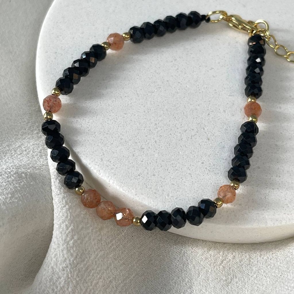 • Браслет из черной Шпинели и Солнечного камня 16 см +