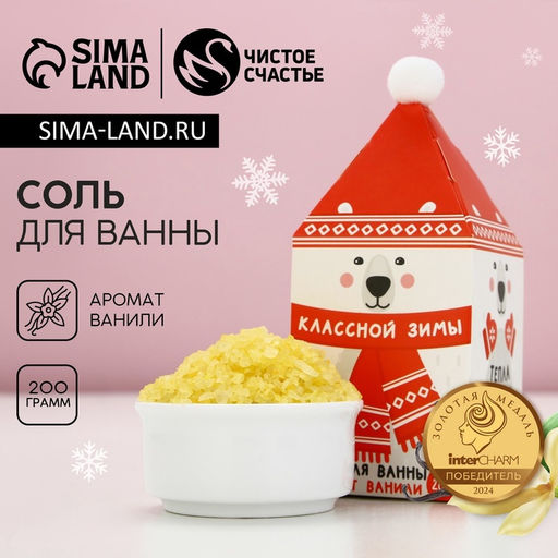 • Соль для ванны «Классной зимы!», 200 г, аромат ванили, Чистое счастье