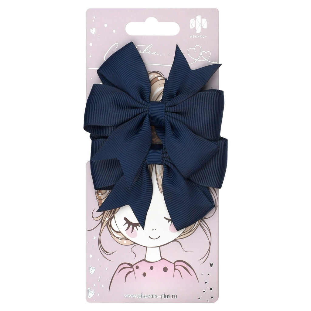 Набор резинок для волос арт. 71817 / 10 БАНТЫ (в наборе: 2шт., б/р, размер банта 6,5 см, вулканизированная резина, полиэстер, цвет: тёмно-синий, подложка из мелованного картона + ПЭТ-пакет с европодвесом)