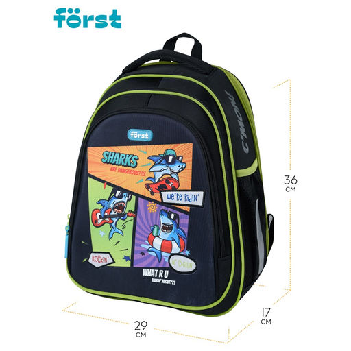 • Рюкзак F?rst F-Base "Shark party" (FT-RY-020403) 36*29*17см, 3 отделения, 2 кармана, анатомическая спинка