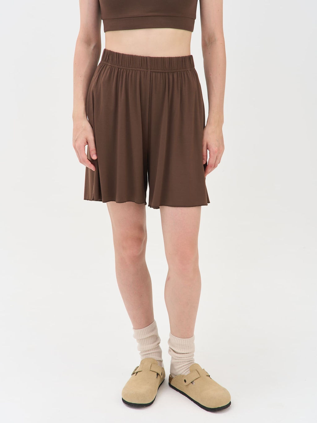 Гармонично сочетается с лонгсливом или топом в тон, превращаясь в идеальный домашний комплект для неспешных утренних ритуалов, уютных вечеров и минут, когда так важно почувствовать заботу о себе.