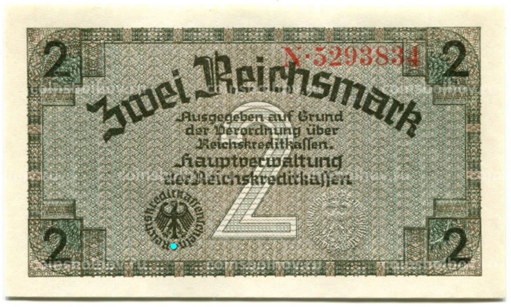 • Банкнота 2 рейхсмарки 1940 года Германия (Для оккупированных территорий)