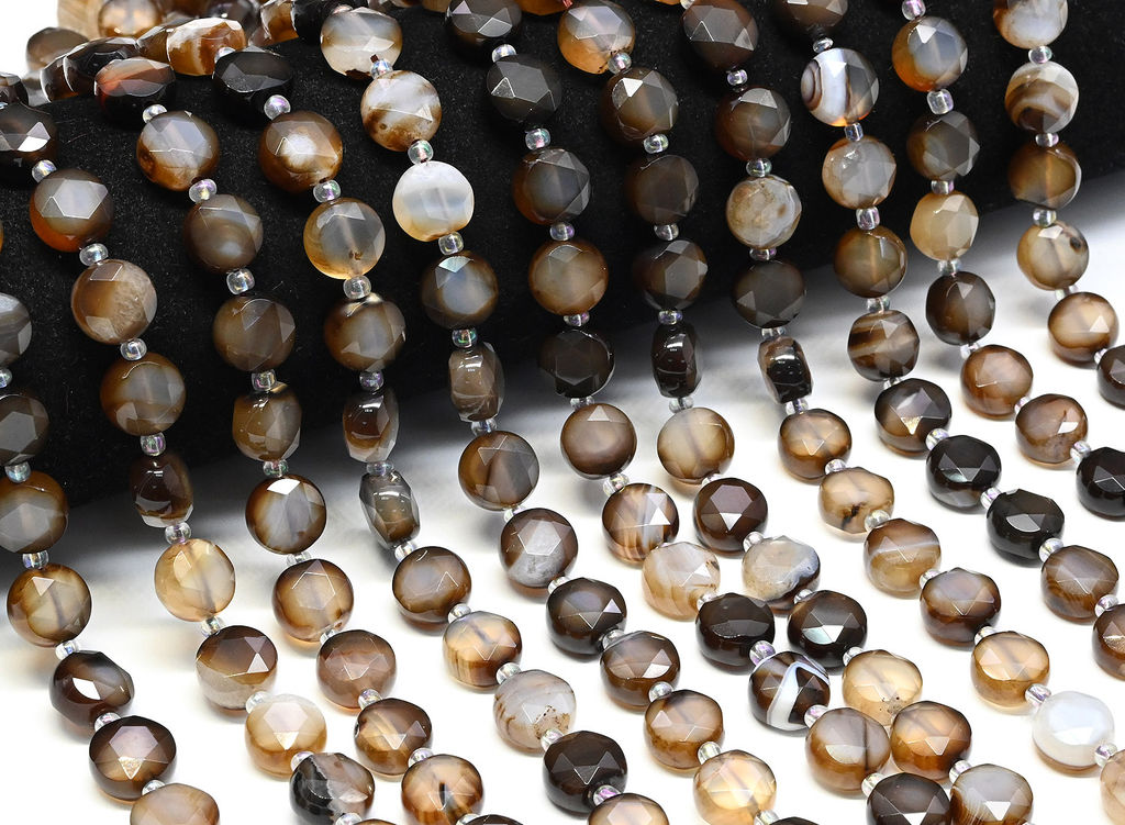 • Бусины из агата кофейного круг граненый 10мм, 37см, 30 бусин Радуга камня