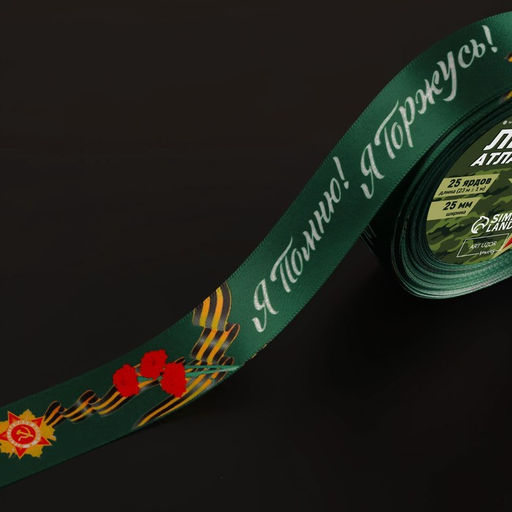 • Лента атласная «Я помню! Я горжусь!», 25 мм × 23 ± 1 м, цвет зелёный