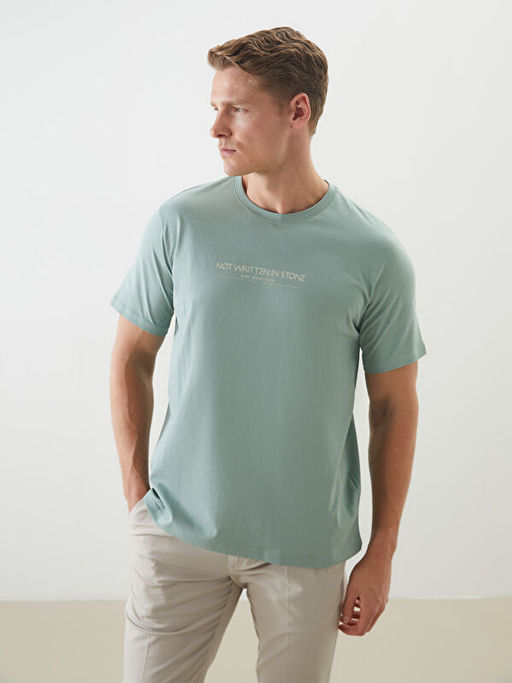 • Bisiklet Yaka Bask?l? Penye Erkek Ti??rt