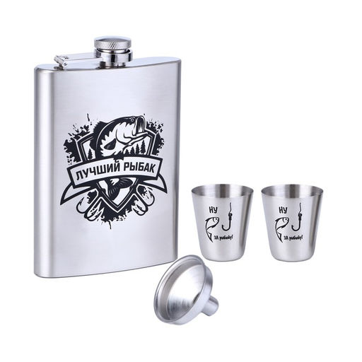 Фляжка — это небольшой сосуд, который используется для хранения и переноса жидкостей. Они популярны среди путешественников, спортсменов и любителей активного отдыха. Легкий и функциональный аксессуар - станет незаменимым спутником любых приключений. Фляжка - это оригинальный способ хранить и переносить жидкость в стильном форм-факторе, модный аксессуар, который привлекает внимание и поднимает настроение. Фляжка будет вашим верным спутником, готовым утолить вашу жажду в любых ситуациях. Компактный размер фляжки делает ее идеальным выбором для путешествий и прогулок. Фляга предназначена для хранения и транспортировки питьевой воды. В нее также можно наливать любые согревающие напитки, в том числе алкогольные.Отличным дополнением в наборе с фляжкой являются 2 рюмки и воронка для удобного переливания жидкостей, упакованы в подарочную коробку. Подарочный набор подойдёт в качестве подарка папе, брату, другу, брату, дедушке на 23 февраля, день рождения или любой другой праздник. Для кого: Для мужчины. В наборе, шт.: 4. Объём, мл: 30. Объём, мл: 240. Вид упаковки: Коробка картонная. Тематика праздника: 23 Февраля. Тематика праздника: Универсальная тематика. Адресат: Рыбаку. Составляющие набора: Фляга. Составляющие набора: Рюмки (стопки). Составляющие набора: Воронка. Возраст: Для взрослых.
