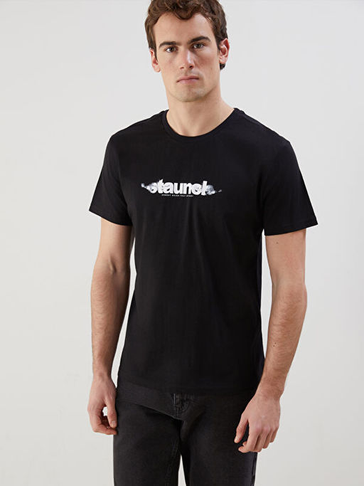 • Bisiklet Yaka Bask?l? Penye Erkek Ti??rt