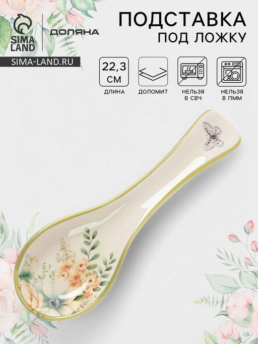 • Подставка под ложку Доляна «Цветы», 22.3×7.1×2.7 см, доломит, белая