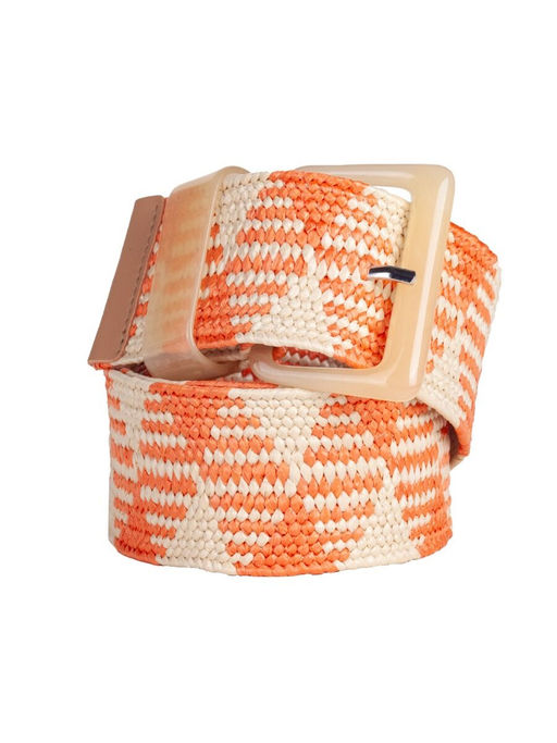 Стильный ремень-резинка в кремово-оранжевых тонах из текстиля с пряжкой, имтирующей слоновую кость. Плетеная структура ремня позволяет застегнуть его в любом удобном месте, что в значительной степени увеличивает его практичность при ношении и позволяет отрегулировать для себя комфортный размер. Модель отлично сочетается с нейтральными рубашками, пиджаками, джинсами и брюками, разнообразит любой образ, не перегружая его.