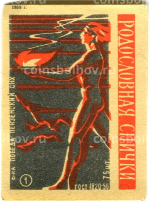 Этикетка спичечная Родословная спички №1 фабрика Победа