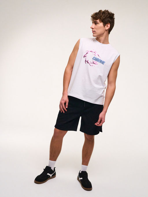Майка для мальчика оверсайз - незаменимая вещь в летнем гардеробе тинейджера, который следит за последними трендами моды! Базовая футболка выполнена из премиальной хлопковой ткани с добавлением лайкры. Актуальный свободный крой и яркий винтажный принт "хром" выделят Вашего ребенка из толпы и подчеркнет его идентичность! Состав:92% хлопок, 8% лайкра