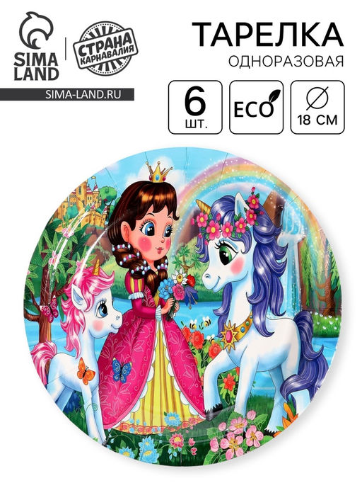 • Цена за 5 шт. Тарелки бумажные «Принцесса», 18 см, 6 шт.
