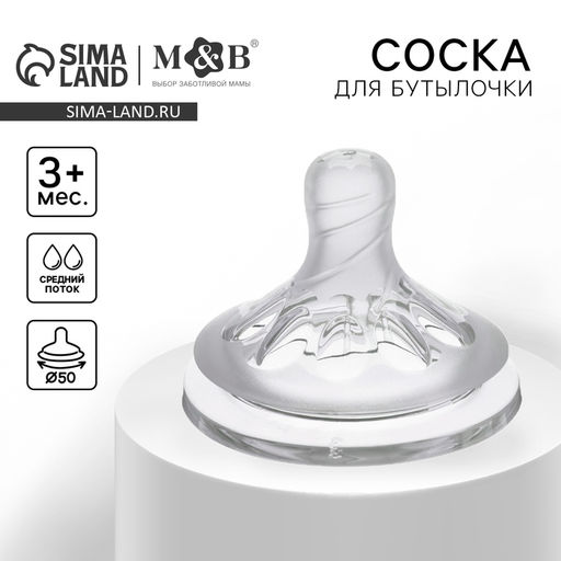 • Соска на бутылочку M&B Natural, антиколиковая, от 3 мес., широкое горло Ø50 мм, средний поток