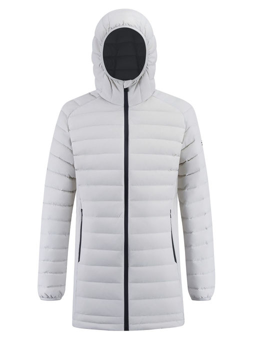 Удлинённый силуэт обеспечивает дополнительную защиту от ветра и создаёт ощущение уюта и защищённости. Капюшон помогает сохранить тепло и защищает от непогоды, делая куртку ещё более практичной для повседневной носки.