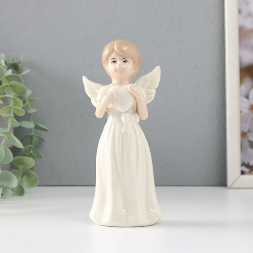 Фигурка керамика Девочка-ангел в белом платье с сердцем в руках, 6.6?5?15.7 см