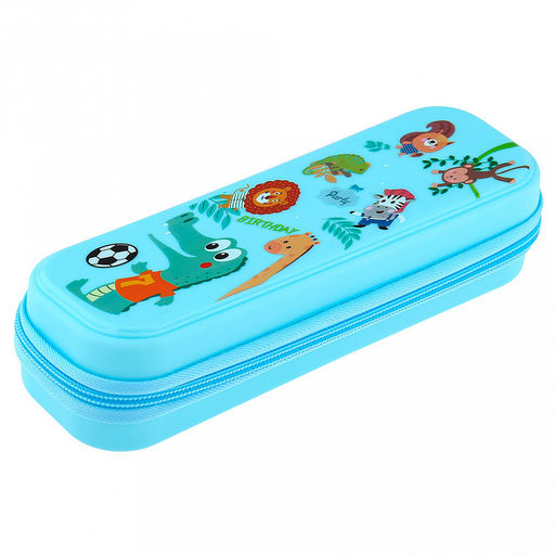 • Пенал 22х8,5х5см "Зоопарк" 1 отделение, пластик, на молнии, цвет - голубой, в п/эт пакете (Китай)