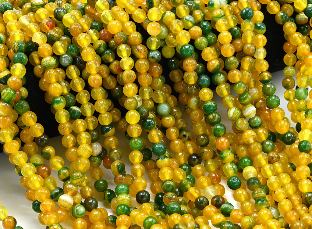 • Бусины из агата тонированного шарик 6мм желто-зеленый, 37см, 60 бусин Радуга камня